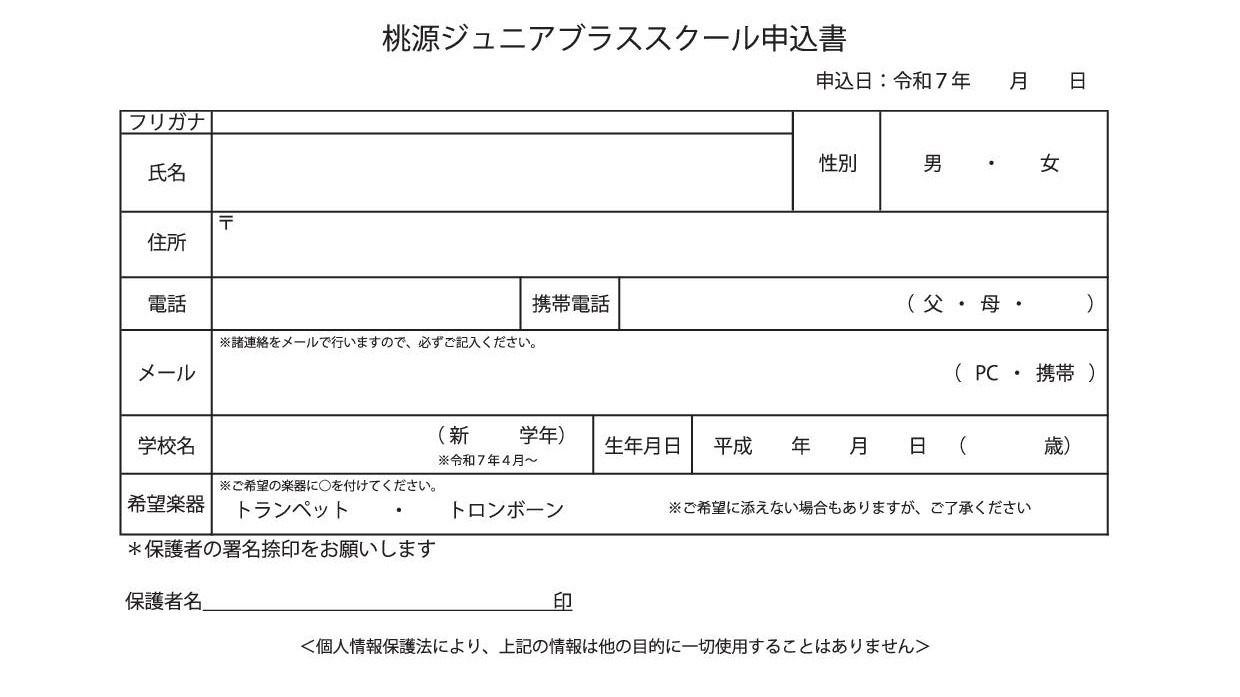2025桃源ジュニアブラススクール 申込書